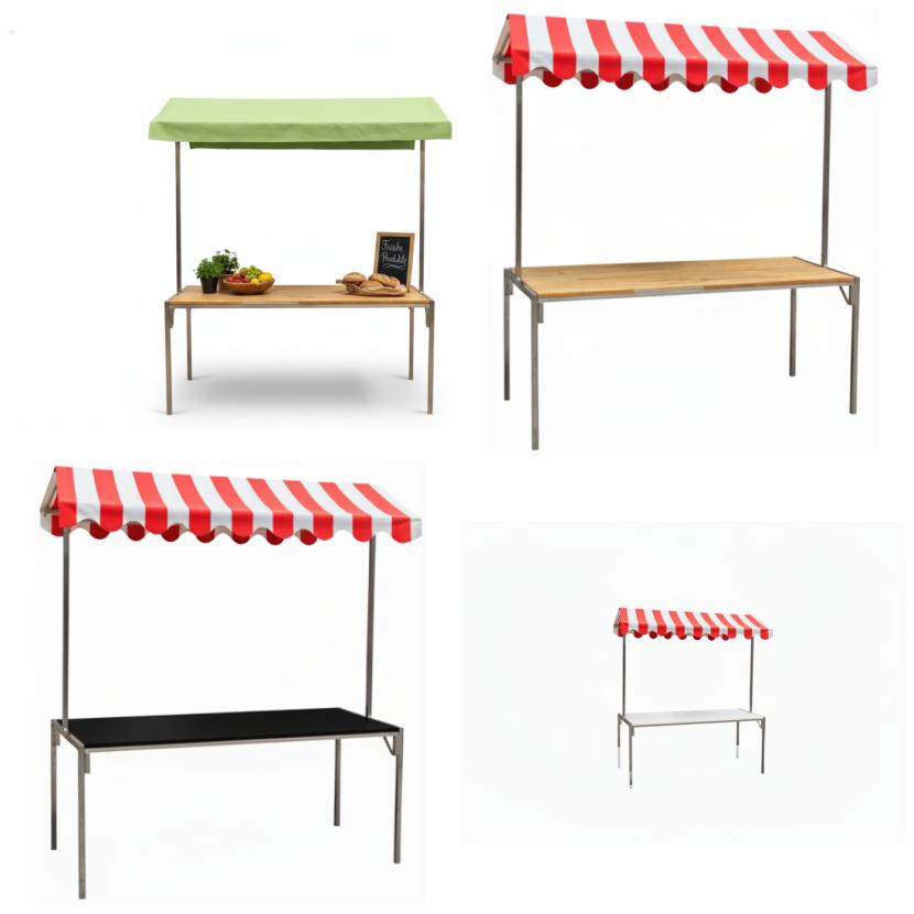 Marktstand - Tischplatte: schwarz - Dach: rot-weiß
